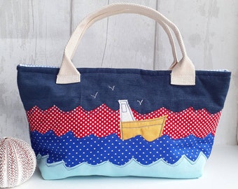 Handbag, shoulder bag, bag, purse, boat bag, embroidered bag, fabric bag, top handle bag, canvas handles, birthday gift, gift for her