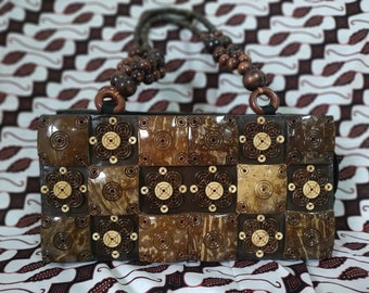 Vintage Handmade Coconut Shell Bag (Top Handle Bag) + FREE WALLET
