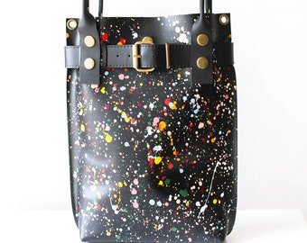 Leather Purse, Black Leather Handbag, Shoulder Bag, Leather Bucket Bag