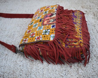 Vintage Banjara Tote bag / shoulder bag / leather handle bag