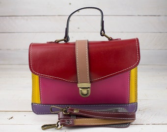 Leather shoulder bag, leather crossbody, leather bag, small leather shoulder bag, handle bag, colorful leather bag, women bag