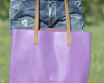 Lilac Leather Tote Bag • Shoulder Bag • Tote Bag • Top Handle bag • Shopper Bag • Lilac Bag • Lilac Leather Tote Bag