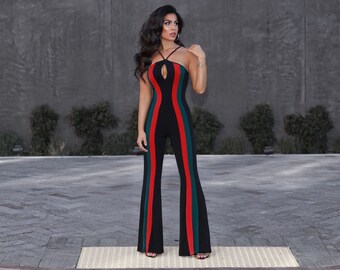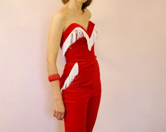 Red white playsuit Pin up playsuit Candystripe jumpsuit 50s playsuit