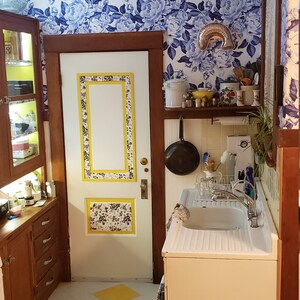 Materials: self adhesive, removable wallpaper, or regular wallpaper