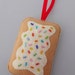This adorable cupcake is hand-sewn with beaded sprinkles. It is topped with a shamrock and has magnets hidden inside. It is sure to brighten up any Fridge, Workspace or anywhere else with a magnetic surface.