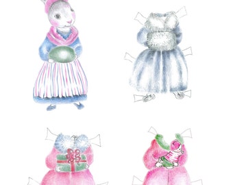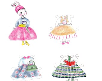Girl's Personalized Paper Doll Kit WITH 20 COSTUMES digital files
