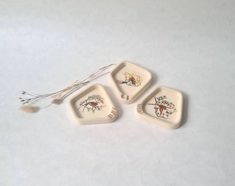 BUY 1 GET 1 Ceramic Ashtray Set in Yellow and Gray, Handmade Tulip Pattern & Istanbul Design , Unique Oriental Decor and Gift Idea