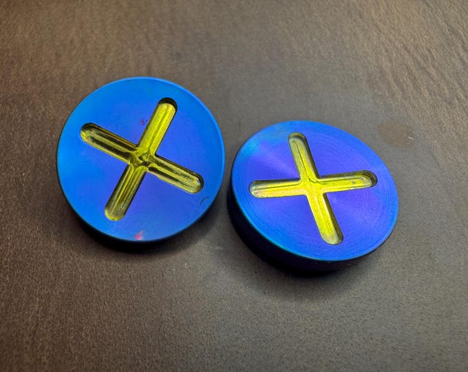 Titanium FidgetBoy X-Buttons - Blue And Bronze Anodized - 24.5mm