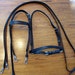 Well, hello gorgeous! Custom hand crafted black with gray python overlay. Stainless steel crown and ear spots with sterling silver custom buckles and conchos. Horse size.
