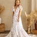 Custom Boho Wild Flower Lace Cape Sleeves Plunge Neckline Wedding Dress,Fairy Bridal Gown,Unique Alternative Bride,Outdoor Forest Wedding