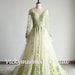 Green Floral Lace Tulle Off Shoulder Flowing Cape Sleeves Fairy Wedding Dress, Forest Fairy Bridal Gown, Unique Alternative Bride Dress