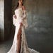 Off Shoulder Wedding Corset and Skirt Set with Chiffon Sleeves and Train | Satin Bridal Corset Top | Custom Made Two Piece Wedding Dress