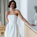 White Strapless Corset Wedding Dress with Structured Skirt and Sheer Overlay - Minimalist Bridal Gown for Civil Ceremony or Modern Bride