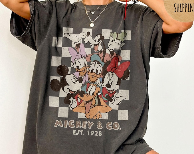 Retro Mickey Co 1928 Comfort Colors Shirt, Mickey and Friends Checkered Shirt, Vintage Disneyworld, Disneyland Trip Shirt, Disney Family Tee