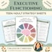 Executive Functioning Strategy Sheets (Teen/Adult) | Printable Reference Pages + Wheel | Therapy, Classroom & SEL Resource