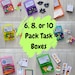 A variety of activity cards featuring Sudoku challenges, color sorting designs, and creative image-building prompts using the colored blocks.