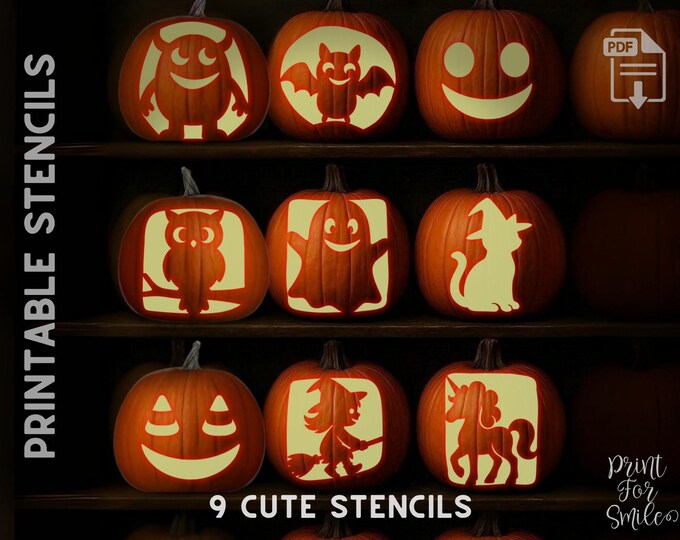 Kids Pumpkin Carving Stencil Set – Fun & Spooky Halloween Faces, Easy Printable Templates (Bat, Ghost, Owl, Monster, Witch, Unicorn)