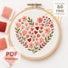 Stick and Stitch Embroidery Valenitnes Floral Pattern, instant download printable PDF for Clothes, Totes and Gifts, Hearts, Roses, Be Mine
