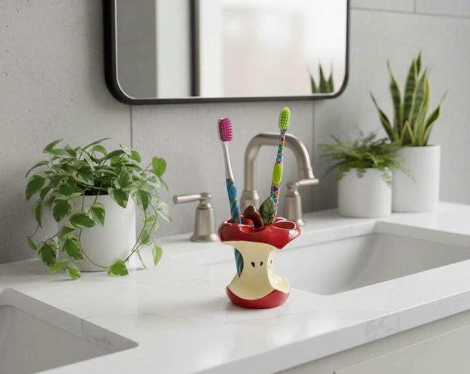 Divertido soporte para cepillos de dientes con forma de corazón de manzana / Decoración para el baño