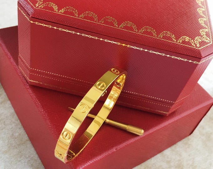 Pulsera vintage LOVE de oro amarillo de 18k, talla 18, 6,1 mm de ancho, con destornillador.
