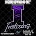 This design features layered lettering with crystal rhinestone placement, making it ideal for shirts, hoodies, and school spirit wear for games, competitions, and events.