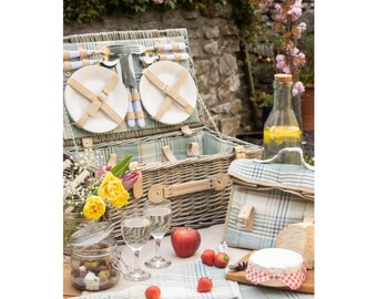 Personalised Luxury 4 Person Quintessential British Classic Rope Handled Picnic Basket / Hamper / Inspiring a Very English Day at the Races