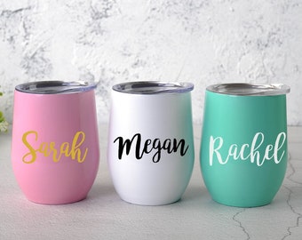 Personalized wine tumbler with lid wine sippy cup custom wine cup insulated wine tumbler decal monogrammed wine cup rose gold wine tumbler