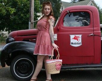 Vintage Handmade 70's Gingham Long Picnic Dress