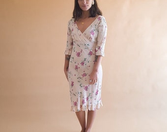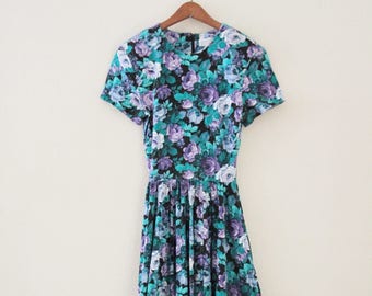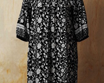 VTG 90s Black and White Floral Checkered Picnic Dress M/L
