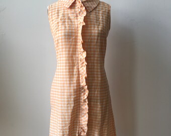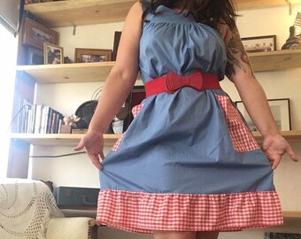 1970s long sleeved checkered picnic dress, back zipper, wizard of oz