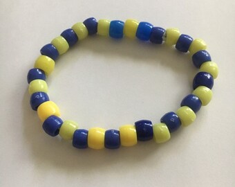 Isabel's Blue and Yellow Stretch Bracelet/Kiddie Jewelry/Toy Bracelet/Pony Bead Bracelet/Plastic Bracelet/U of M