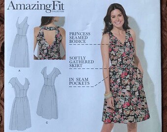 Simplicity Pattern # 1354 - UNCUT - V-Neck Princess Dress - Custom Fit - Cutout or Plain Back - Sleeve Options - Sizes 10, 12, 14, 16, 18