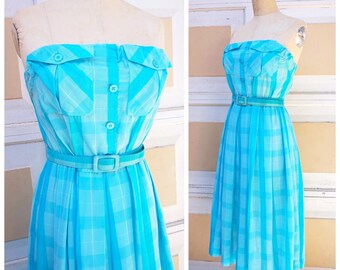 Blue Checkered Min 1980's Summer Dress, gingham, picnic dress, 1980's, 80s, eighties