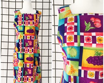 90s Fruit Print Mini Dress / Picnic Party Dress / S