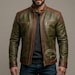 Men’s Sheepskin Leather Hooded Jacket | Green Black Red Moto Biker Jacket | Removable Hood | Handmade Winter Leather Coat