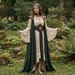 Elven Fantasy Women's Dress | Green Fairy Corset Gown | Medieval Lace-Up Costume | Flowing Sheer Sleeves Casual Wear | LARP Cosplay Outfit