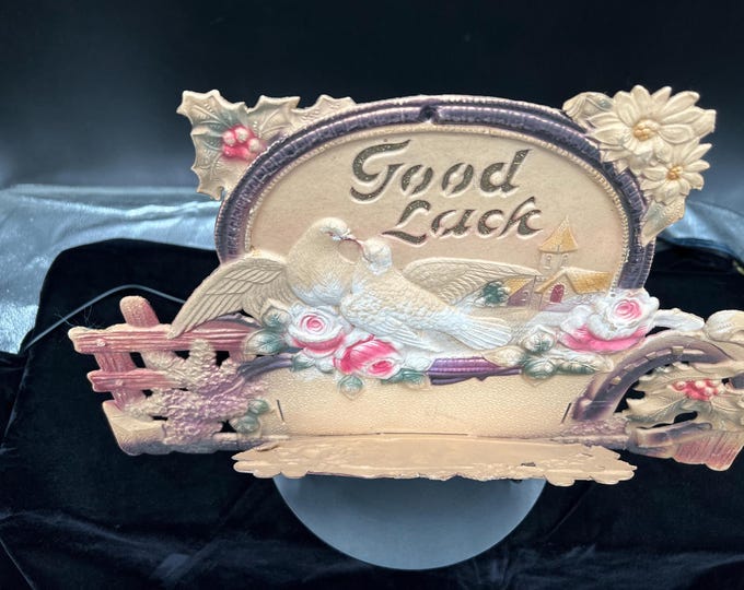 Antique 1925 Pressed Cardboard Picture Calendar – “Good Luck” – Ahmeek, Michigan Meat Market. FREE SHIPPING.