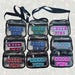 - Material: Clear PVC , with black trim, durable silver zippers and an adjustable strap that is removable. The letters are made with a stiff felt and glitter vinyl in your choice of colors.