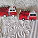Set of Fire Trucks is Perfect for a special boy in your life! Wonderful Accents as Pictured in Bright Red, White, Black, and Gray.