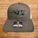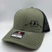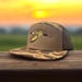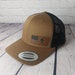 100% Vegetable Tanned, Laser Engraved Leather Patch stitched onto a Richardson 112 Loden Snapback Trucker Cap