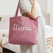 Each tote bag is carefully embroidered with high-quality stitching and customized with your chosen name, word, or special message. The embroidery offers a premium finish that will not fade, peel, or crack like printed designs, ensuring a long-lasting and stylish accessory that Mom can use every day.