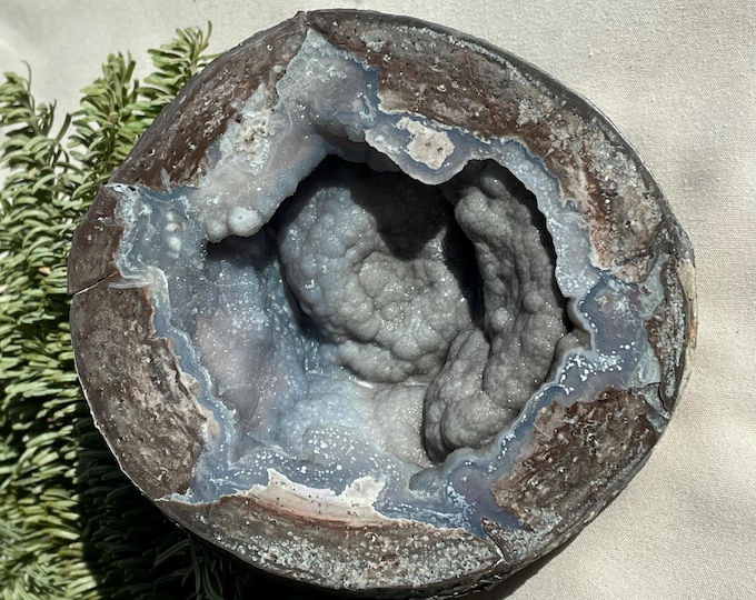 UV Reactive Utah Dugway Thunderegg Half with Botryoidal Agate and Druzy Pocket #G124-2