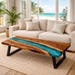 Handmade Rectangular Acacia Wood Blue Epoxy Table Top | Live Edge | Ocean | Dining Coffee Table | (Customisable)