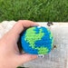 Pluto. This patch measures 1-1/2” in diameter. The patch has a glue back. It can be sewn-on, or ironed on. To iron, put the patch where you want it. Place a cloth over the patch and apply a medium hot iron, pressing firmly. This melts the glue into the fabric, making a firm bond. Remove the iron and allow the patch to cool.