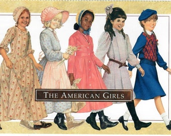 Retired PLEASANT COMPANY DOLL Postcard! 1996! Felicity - Kirsten - Addy - Samantha - Molly In Meet Outfits