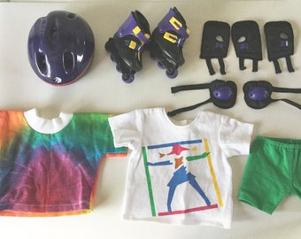 American Girl Pleasant Co ROLLER BLADES In-line Gear Skates Helmet 4 Pads 2 Shirts Shorts Hoodie Retired 1996 NO Doll