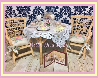 Pleasant company - American girl Samantha Wicker table and chairs with lemonade set and Birthday treats original- Retired with box and book