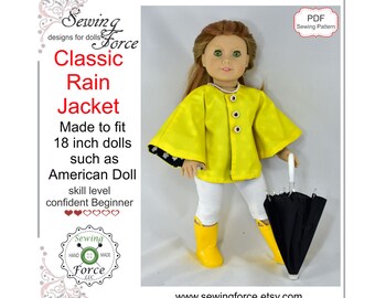 Classic Rain Jacket PDF sewing pattern for 18 inch Doll like American Girl Doll and Pleasant Company pre-Mattel, jacket rain coat clothes
