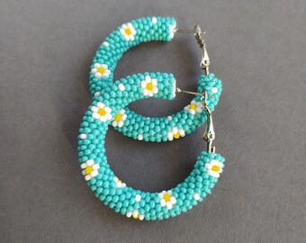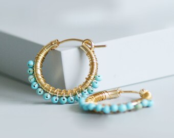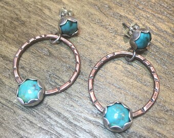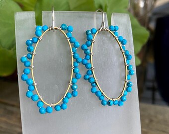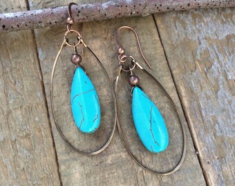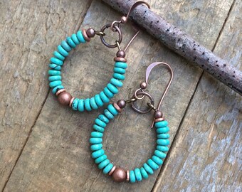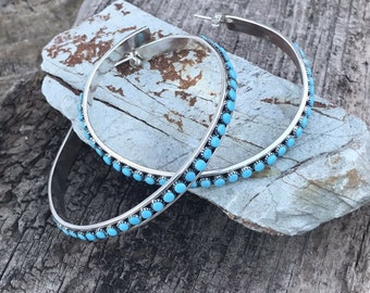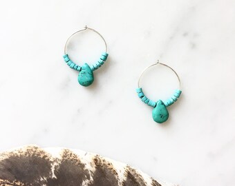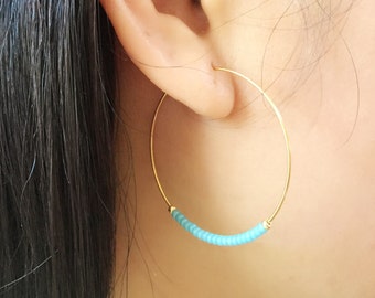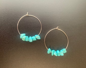 Big Hoop Earrings, Turquoise Hoop Earrings, Large Earrings, Hoop Hollow, Vintage Casual, Vintage, Turquoise jewelry, Anniversary gifts