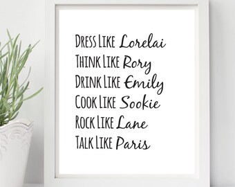 Gilmore Girls Printable, Dress Like Lorelai, Think Like Rory, Gilmore Girls Poster, Emily, Gilmore Girls Gift, Gilmore Girls Quote, Printabl